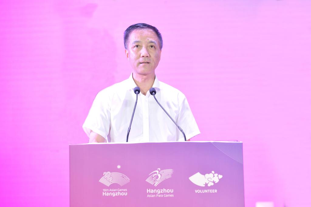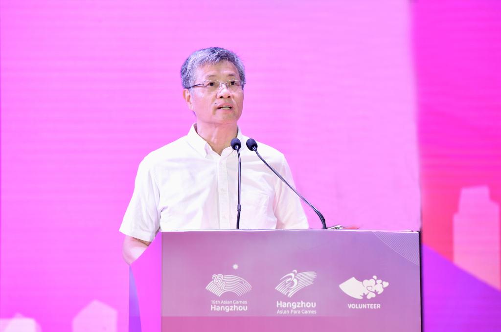 市人大常委会副主任、亚运村运行指挥中心执行指挥长卢春强,市人大常委会副秘书长、亚运村运行指挥中心副指挥长魏虹,国家体育总局二级巡视员、NOC/NPC服务团队副指挥长李冰,杭州亚运会赛事总指挥部人力资源指挥中心副指挥长、团省委志工权益部部长郭彧,亚运村人事与志愿者管理中心主任张伟,我校党委书记宣勇,校长、党委副书记张环宙,党委副书记曹仁清、赵文波,副校长、党委委员李安、柴改英,党委委员、纪委书记包永根,副校长、党委委员,组织部、统战部部长徐勇,副校长、党委委员,宣传部部长毛振华出席仪式。赵文波主持仪式。