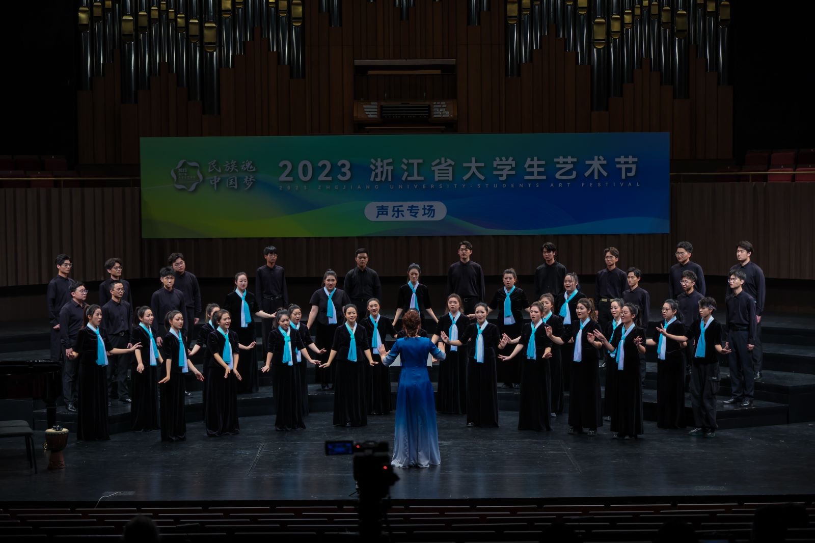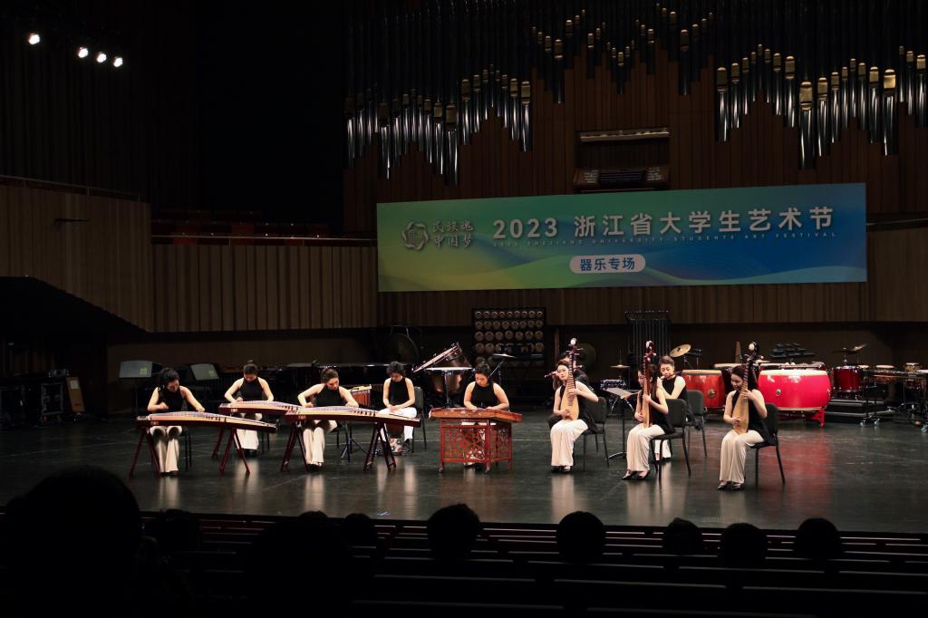 2023年浙江省大学生艺术节以“民族魂中国梦”为主题,自4月启动以来,共收到102所高校选送的器乐、声乐、舞蹈、戏剧及朗诵等五大类共770个节目,经组委会审核和专家组评选,最终确定183个节目入围现场展演。我校报送五个大类共11个节目,涵盖全部项目类别。其中大合唱《姜女祠》《Bonse Aba》、表演唱《往日时光》、个人声乐《沂蒙山,永远的爹娘》、朗诵《不朽的军魂》、舞蹈《I won’t complain》《遗失的森林》、器乐《动感弹拨》《绿·风》8个节目入围现场展演。
