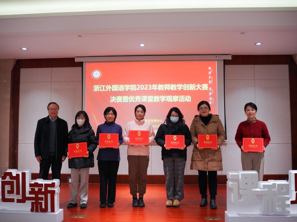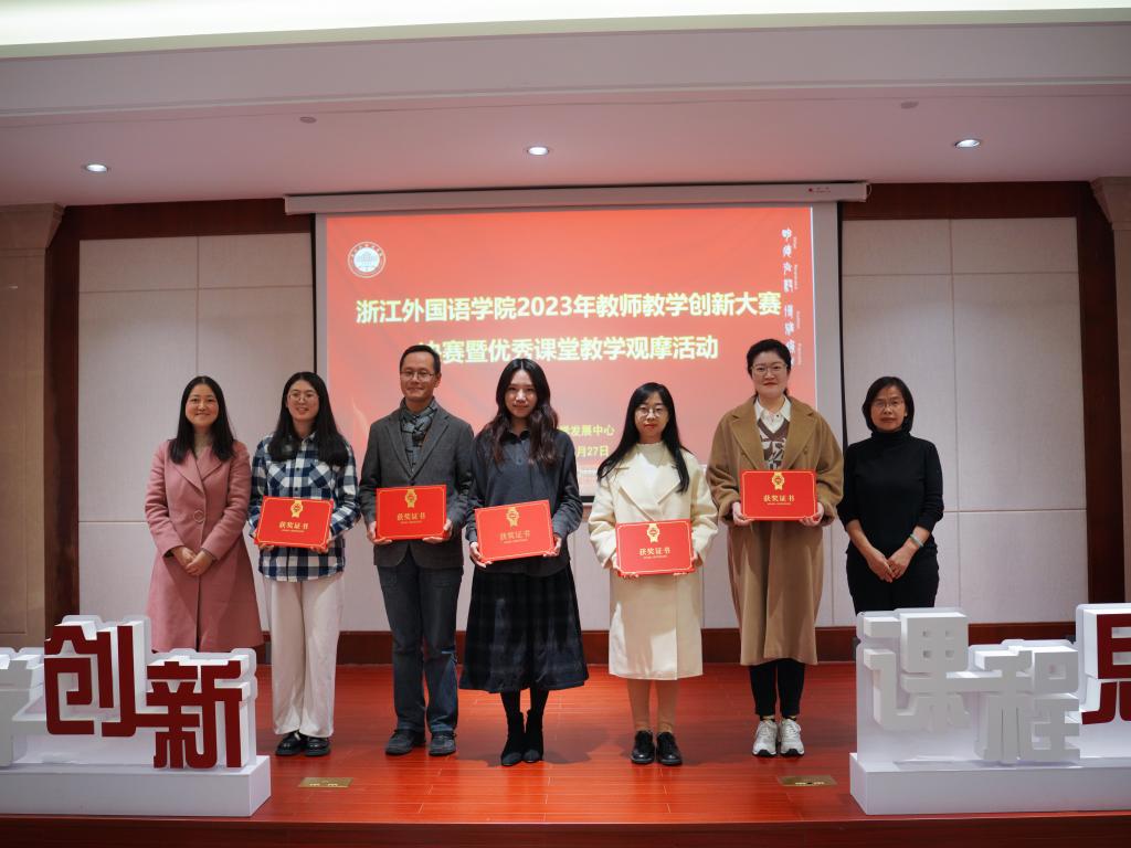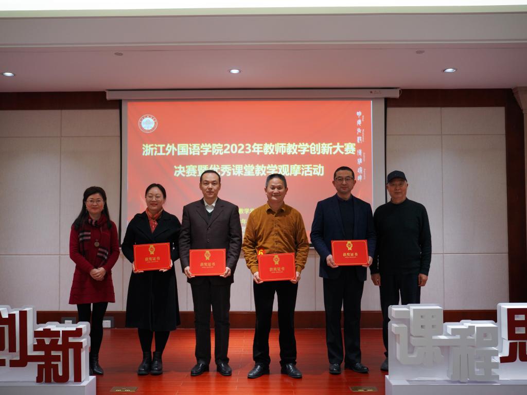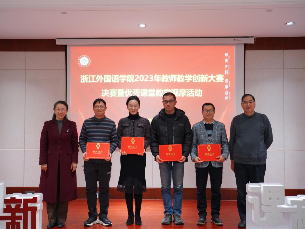 本次决赛分为网络评审和现场比赛两个阶段。决赛现场,8位主讲教师进行教学设计创新汇报。经专家评议,英文学院肖奇民教师团队、中文学院张超教师团队、教育学院叶丽霞教师团队、应外学院陆思逸教师团队获特等奖。英文学院,商学院、创业学院,教育学院,文旅学院获优秀组织奖。