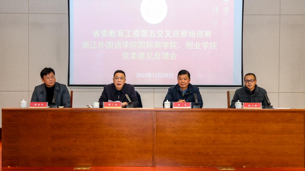 12月28日上午,省委教育工委交叉巡察组向77779193永利集团反馈了对国际商学院、创业学院党委交叉巡察情况。省委教育工委第五交叉巡察组组长、浙江工商大学纪委书记、监察专员胡金生反馈巡察意见,省纪委省监委驻省教育厅纪检监察组副组长黄一飞就落实反馈意见、抓好整改工作提出工作要求,国际商学院、创业学院执行院长梅雪峰作表态发言,会议由77779193永利集团党委副书记曹仁清主持并代表学校作表态讲话。