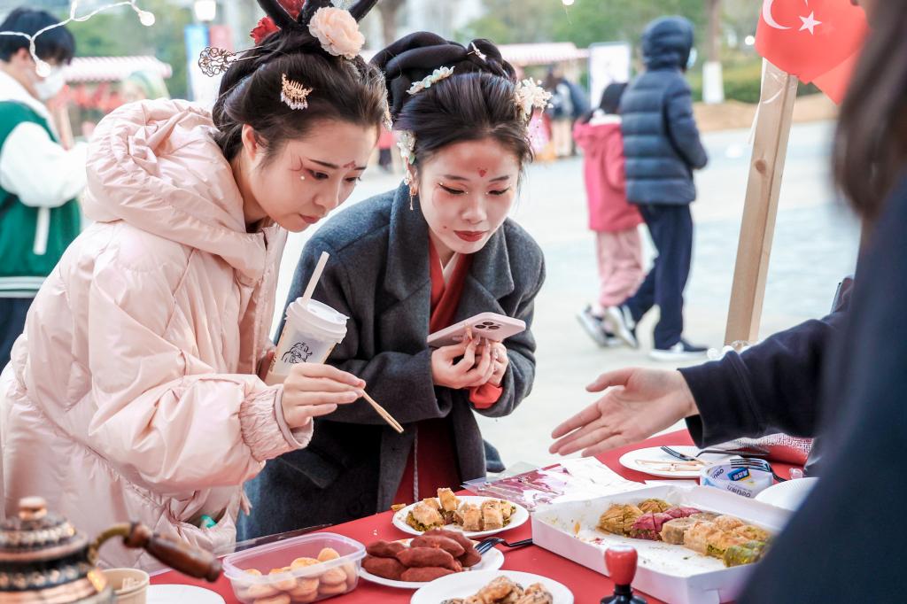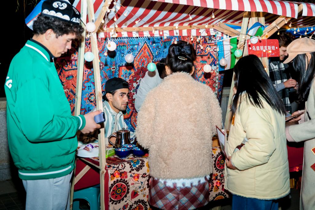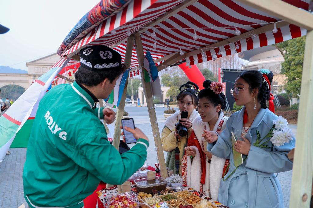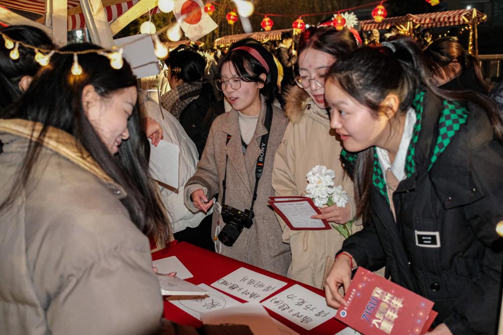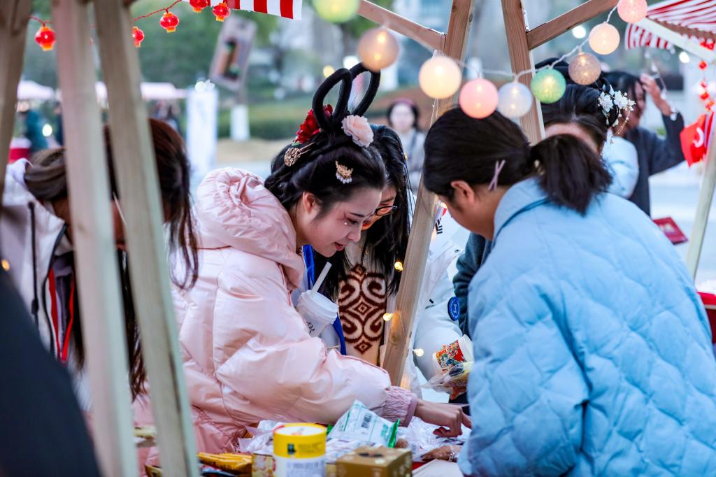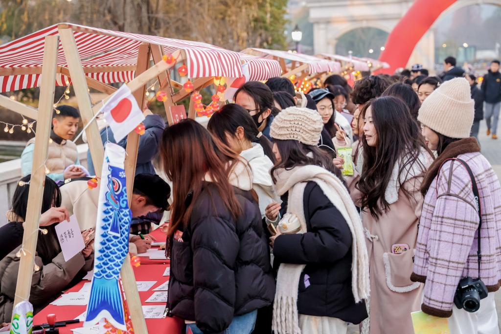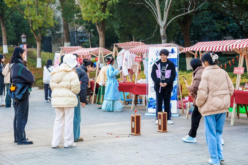 享受完美食,师生们来到欢乐嘉年华散步消食,感受多元文化交融的市集魅力。作为2024跨年盛典暨“ZISU(紫苏)学生节”活动之一,“ZISU欢乐嘉年华”活动由“丝路筑梦,五洲同行”国际游园会、“和而不同,美美与共”传统游园会、“乐艺集”集市活动三个篇章组成。