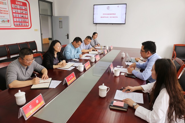 4月24日,海亮外国语学校校长朱红胜一行人来校交流,副校长柴改英会见来宾。