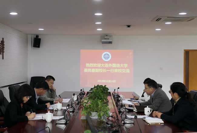 11月14日,大连外国语大学副校长姜凤春一行来我校交流调研。副校长曹仁清出席并讲话。