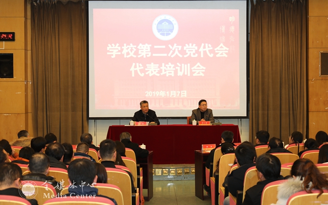 1月7日,学校召开第二次党代会代表培训会议。校党委书记宣勇作重要讲话,校党委副书记曹仁清主持会议。