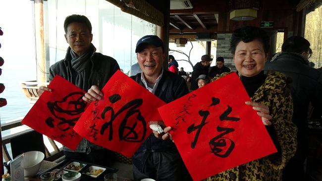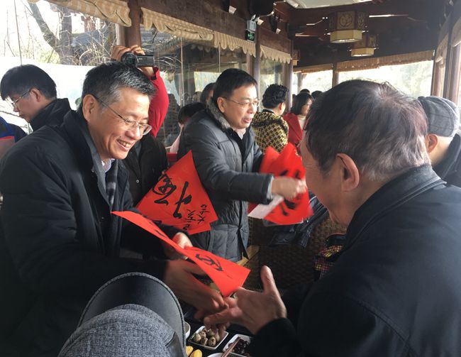茶话会现场欢乐祥和、暖意融融。所有的老同志都收到了由我校艺术学院孟磊老师专门书写的“福”字,倍感温馨。一杯淡淡的清茶、一声真挚的问候,大家相互寒暄,彼此祝福,畅谈退休后的幸福生活,西子湖畔欢声笑语延绵。