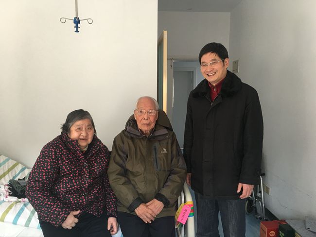 1月23日,校长洪岗看望慰问了住在杭州同济医院现已97岁高龄的离休老教师金新。洪岗耐心地用写字板与金老师进行交流,叮嘱金老保重身体、安享晚年。当日,洪岗还走访慰问了退休校领导鲁林岳,与老领导嘘寒问暖,闲叙家常,希望老领导多为学校的发展献计献策。