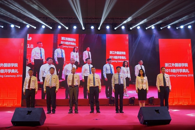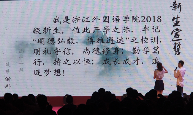 各学院相关负责人和教授代表也用多种语言、多种方式给新生带来了各具特色的寄语,并为新生代表佩戴校徽。
