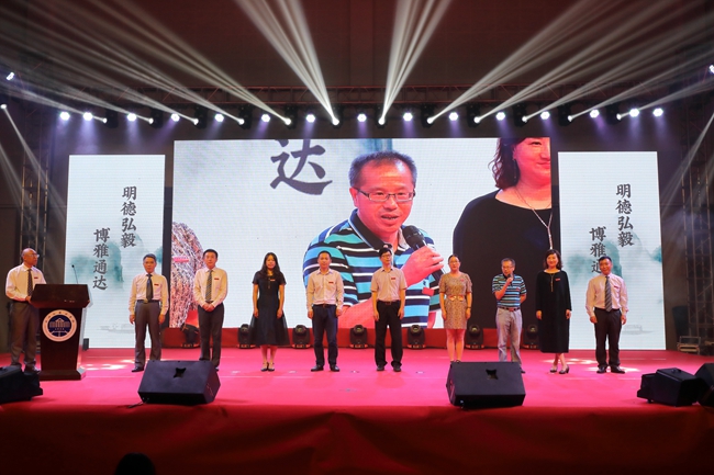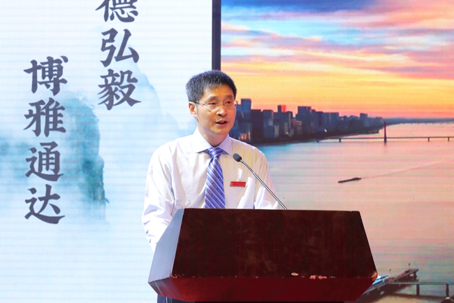 在庄严的国歌声中,典礼拉开了序幕。校长洪岗对新生的到来表示热烈的欢迎和衷心的祝贺,并作“不忘初心,筑梦青春”主题讲话。他结合“明德弘毅、博雅通达”的校训精神,引导新生思考应该做一个怎样的集团人,祝福他们“生活愉快,圆梦集团”。洪岗勉励新生:一是要立明德弘毅之志,胸怀天下、爱家爱国。希望同学们牢固树立民族自豪感和文化自信心,在大学的学习生活中,时时处处胸怀天下,心系国家和人民,自觉地把个人的人生理想同祖国的前途和民族的命运紧密联系在一起,把实现个人梦想融入中华民族伟大复兴的中国梦。二是要做博闻雅致之人,勤奋好学、锐意进取。希望新生尽快转变角色,适应大学,投入学习;养成主动学习、勤奋好学的品格,走上新的人生境界;以求真务实、客观严谨的态度,开拓创新,探索和掌握新知识新本领;学好外语,练好基本功,提升自己的软实力。三是要怀通明达观之心,吃苦耐劳、坚韧不拔。希望同学们从学会必备的生活技能开始,做好自我管理,培养严格的自律精神,养成良好的行为习惯;主动接受社会的试炼,在创新中培养合作精神和解决实际问题的能力,在文化互鉴中培养包容的时代情怀、形成开阔的国际视野。