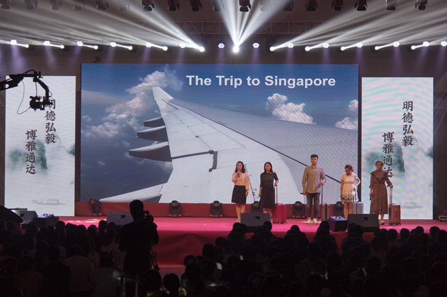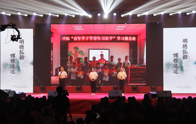典礼的第二篇章向新生们展示了学校的“青年学子学青年习近平”学习教育思政品牌、国际化品牌等特色项目。各项目参与同学娓娓道来,分享所见所闻,展示了学习教育的实践成果、赴新加坡游学的丰富经历和赤道几内亚孔子学院的工作点滴。
