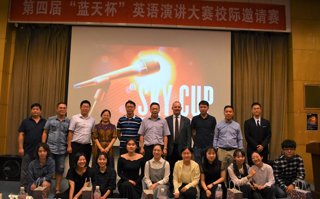近日,我校第四届“蓝天杯”英语演讲大赛校际邀请赛落幕。副校长曹仁清出席并为获奖选手颁奖。
