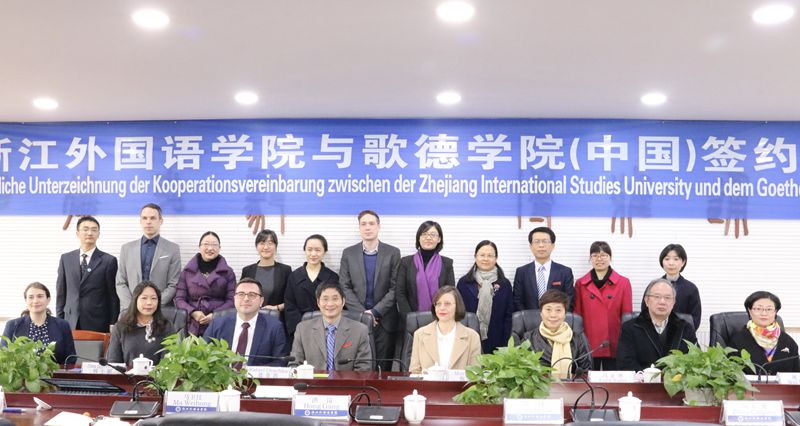 1月17日,学校与歌德学院(中国)举行合作签约仪式。校长洪岗出席仪式并讲话。德国驻上海总领事馆文化教育处领事梅丽娜主任、北京歌德学院德史凯副院长、北京歌德学院教育合作部杨士鹏主任、德意志学术交流中心专家茱莉亚·韦伯女士等外宾,复旦大学、浙江大学、四川外国语大学等单位专家出席签约仪式。