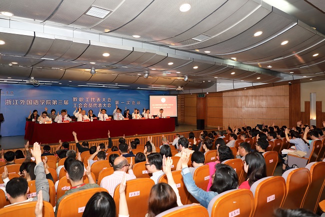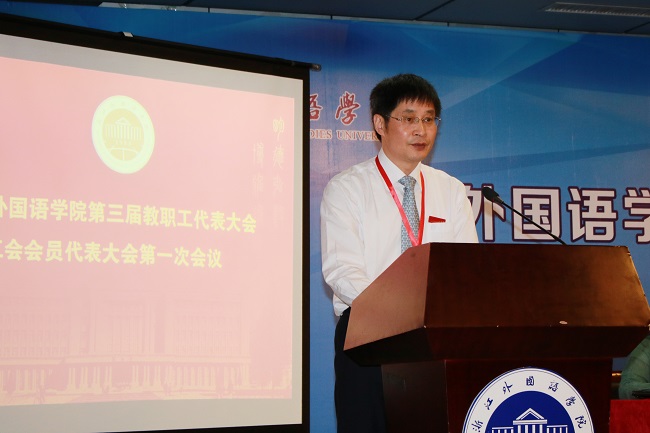 赵祖地代表浙江省教育工会向大会的顺利召开表示热烈祝贺,充分肯定了学校各方面工作,并对新一届教代会执委会和工会委员会提出了希望和要求:一是要成为学校党委决策部署的积极响应者、宣传者,推动学校党委重大思路、重要举措的贯彻落实;二是要作学校各项工作的积极参与者、组织者,以主人翁的姿态积极投入到学校各项工作之中;三是要成为教职工合法权益的积极代表者、维护者,解决好教职工最关心、最直接、最现实的利益问题。