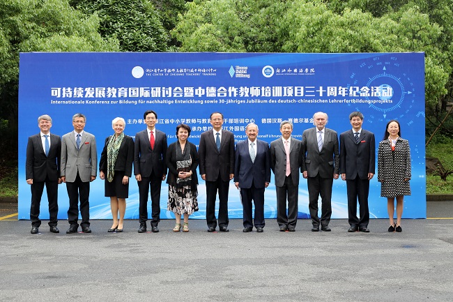 5月7日-8日,可持续发展教育国际研讨会暨中德合作教师培训项目三十周年纪念活动在我校隆重举行。浙江省人大常委会副主任史济锡,浙江省外事办副主任顾建新,浙江省教育厅副厅长丁天乐,校党委书记宣勇出席会议,校长洪岗主持会议。