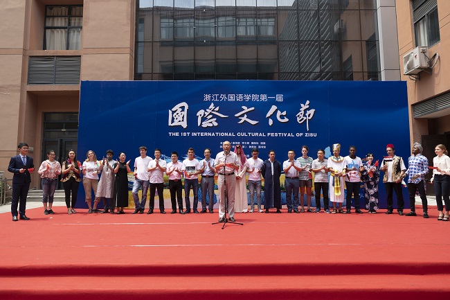 活动现场,赵伐用中英文双语发表了热情洋溢的致辞。他说推进教育国际化是“十三五”时期我省高等教育发展的重要目标,为着力打造与学校外语特色鲜明、教育品质一流的多科性普通本科高校发展目标相适应的校园文化,学校举办了第一届国际文化节。赵伐指出,活动旨在拓展师生国际视野、增进国际理解、提高跨文化交际能力,建设“家国情怀、国际视野”兼具的“多元、高雅、现代”的校园文化,培育具有全球视野的国际型人才,不断为国际多边合作贡献青年智慧。