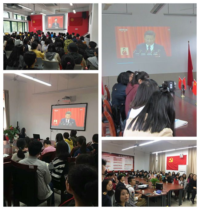 金秋十月,历史的篇章又翻开了重要一页,万众瞩目的中国共产党第十九次全国代表大会在北京人民大会堂隆重开幕。10月18日上午9点,校党委理论学习中心组成员、全体中层干部、各级党总支(直支)、各民主党派、团学青年等千余名师生集中收看了党的十九大开幕盛况。在学校的各大会议室、国际志愿者实训中心、教室、实验室、党员之家、芳草苑、图书馆、寝室及食堂等场所,师生们纷纷围坐在一起,怀着激动的心情聚精会神地聆听习近平总书记的报告。无法现场收看直播的师生,则纷纷通过电视、网站、报纸、微信、微博等各类媒体渠道,认真收听收看会况报道,共同见证这一历史性盛会,祝福伟大祖国开启全面建设社会主义现代化国家新征程。