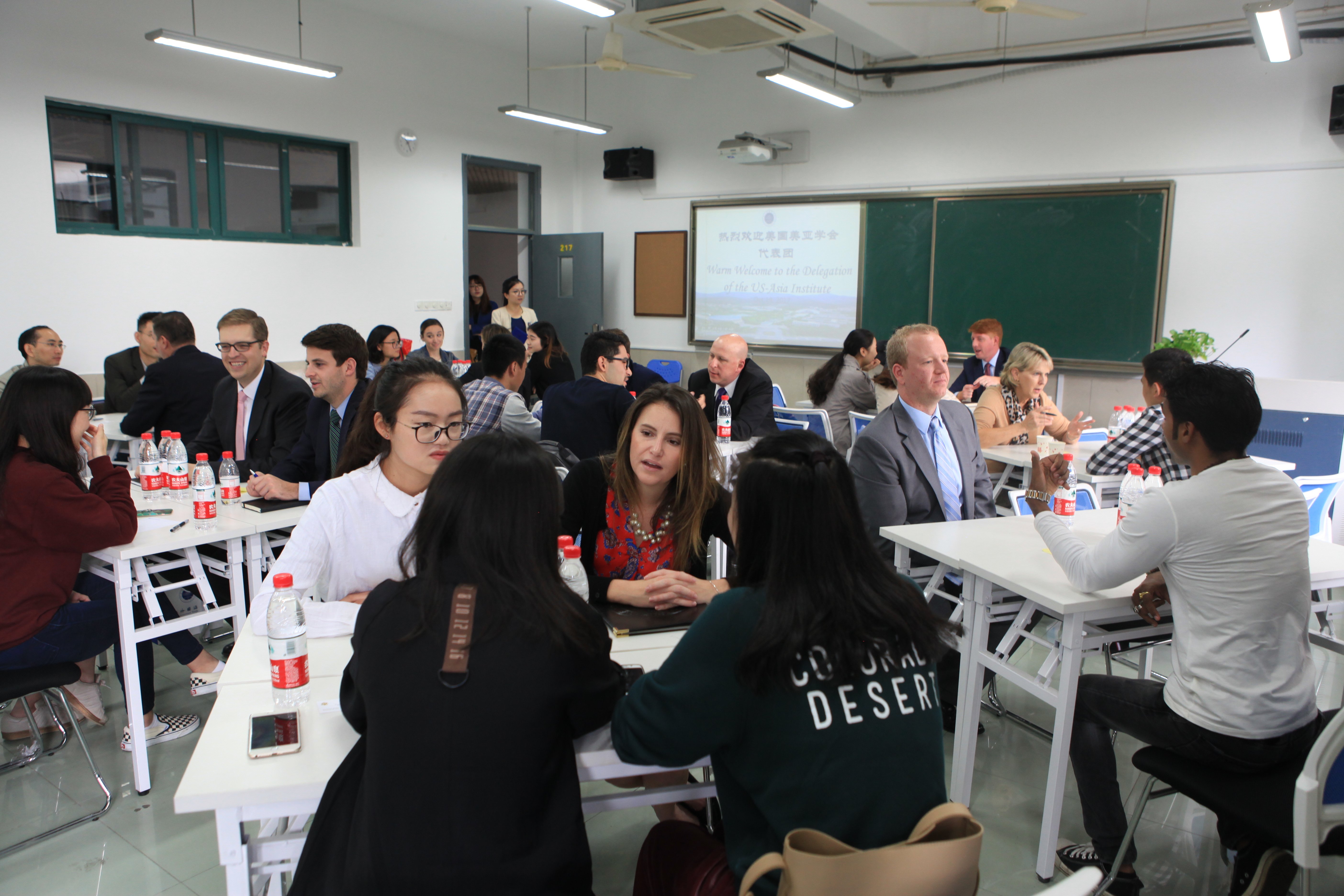 近日,美国美亚学会第113批美国国会议员助手团一行来访我校,校长洪岗接待来宾,省外办、外交学会、我校国际处等相关人员陪同会见。