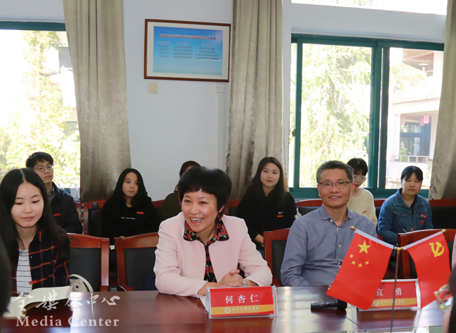11月1日下午,党的十九大代表、省委教育工委书记何杏仁,在校党委书记宣勇的陪同下深入基层,来到我校英文学院英语系学生党支部中间,参加该支部学习十九大精神的座谈会。