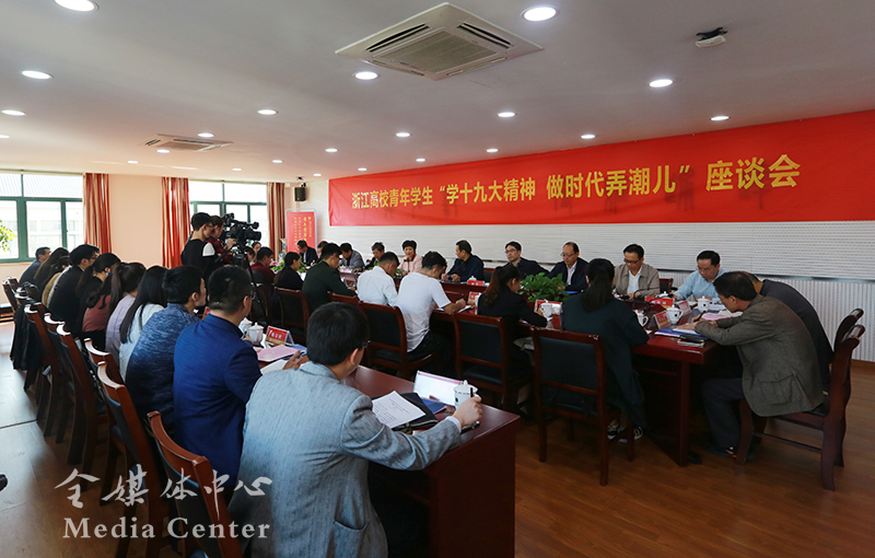 浙江大学党委副书记郑强、部分学生代表就学习党的十九大精神作交流发言。我校学生代表交流了“青年学子学青年习近平”学习教育的体会感受。会上,浙江省高校马克思主义理论教育研究会就全省高校青年学生学习宣传贯彻党的十九大精神发出倡议。