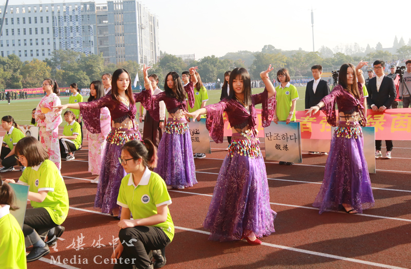 开幕式上,10个学院的近1000名学生参加了太极拳和健美团体展演。武术世界冠军团队作为特邀嘉宾上场表演,展示了传统武术的魅力。校武术队带来了传统的舞狮、武术表演,健美操队带来了活力啦啦操表演,街舞社带来了动感街舞表演,这些精彩节目展示了我校富有特色的体育文化。 此届运动会,全校师生运动员将围绕26个体育项目展开角逐。