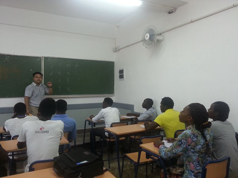 当地时间10月30日,在赤道几内亚国立大学巴塔校区,孔子学院汉语基础一班第一节课正式开课。新教师杨炳麟老师首先介绍了课程学习的要求和进度,然后在“你好”“你叫什么名字”的汉语对话中,从声母教学开始,开始了他在赤几汉语教学的第一课。这标志着孔子学院巴塔教学点新学期的教学工作正式拉开帷幕。