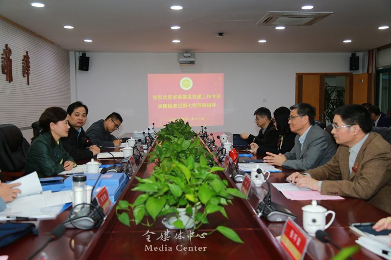 11月13日下午,省委基层党建工作专项调研检查组第七组一行5人在省国资委党建处处长范红的带领下,对我校基层党建工作进行了专项调研检查。学校举行了党建工作汇报会,校党委书记宣勇、校长洪岗等党政领导班子出席。检查组听取了宣勇关于学校党建工作的汇报。