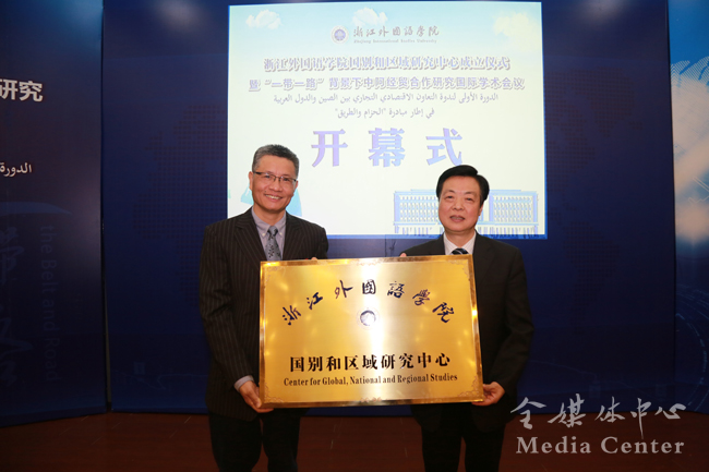 11月17日,我校国别和区域研究中心成立仪式暨“一带一路”背景下中阿经贸合作研究国际学术会议开幕式隆重举行。省委教育工委副书记、省教育厅副厅长陈根芳,省社科联党组成员、副主席邵清,省外国专家局局长厉勇到会指导。校党委书记宣勇致辞,副校长赵庆荣、曹仁清出席,副校长张环宙主持。