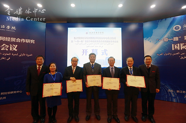阿拉伯研究中心聘任中国前驻沙特阿拉伯、埃及大使,中东问题特使吴思科,中国前驻黎巴嫩、伊朗大使刘振堂,中国社科院西亚非洲研究所所长、中国中东学会会长杨光,中国现代国际关系研究院前副院长、宁夏大学中国阿拉伯研究院院长李绍先,上海外国语大学丝路战略研究所所长马丽蓉等五位专家为特聘专家。副校长赵庆荣、曹仁清向专家们颁发了聘书。
