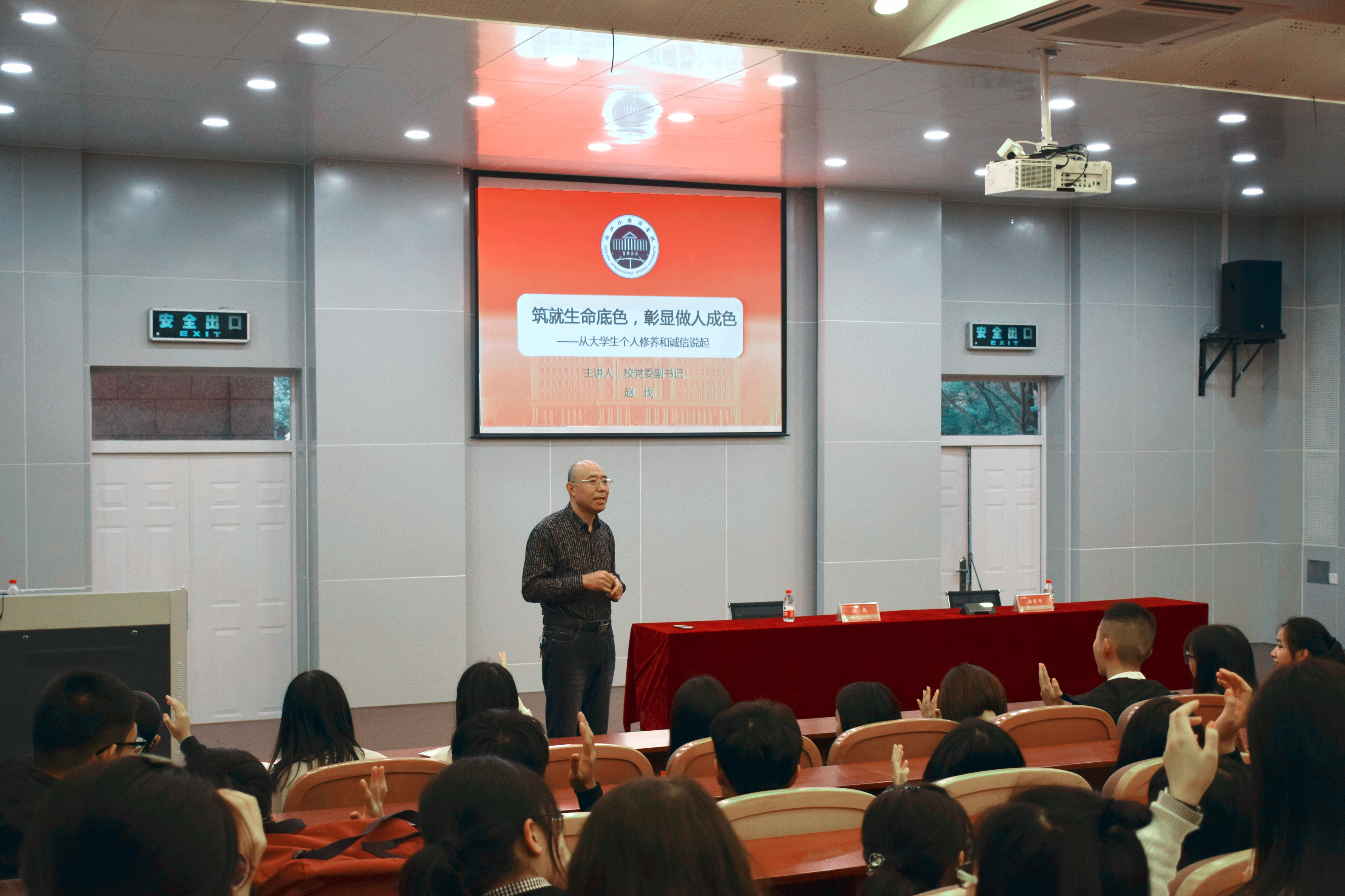 赵伐以“筑就生命底色,彰显做人成色——从大学生个人修养和诚信说起”为题,为师生们上了一堂生动的廉政文化课。赵伐从大学生身边的诚信问题讲起,通过发生在食堂、图书馆等日常生活场景中的具体事例导入,提出大学生应该重视个人修养和诚信问题。赵伐结合个人从教经历,谈自己接受身边人与事的启发,不断思考并提升自身修养与诚信意识。他指出,修养与诚信体现在我们身边的点滴小事中,同学们要从小事做起提高个人修养。现在,正值党的十九大召开,青年学子更要意识到个人修养、诚信与国家文明素质紧密相关,要认识到诚信是社会主义核心价值观的重要内容,是为人之基、立国之本、大学之魂,更是中国传统文化的瑰宝。