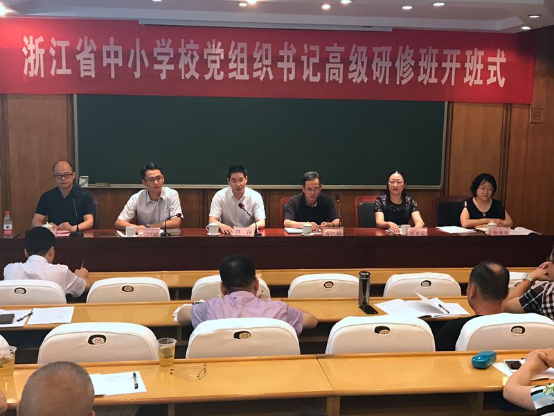 7月14日,由我校承担的“浙江省首届中小学校党组织书记高级研修班”开班仪式在杭州举行。校长洪岗,教育厅基础教育处处长方红峰、师范处主任科员岑超超等出席开幕式。