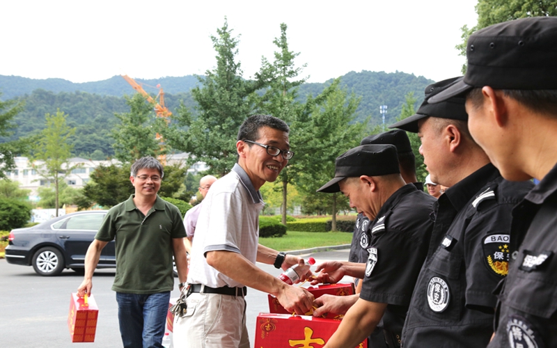 接着,宣勇看望了安保人员,并与他们一一握手,送上慰问品。