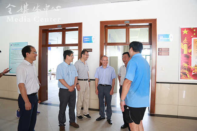 8月9日上午,省教育厅副巡视员吴永良,第十三届全国学生运动会筹委会办公室常务副主任黄华童,小和山高教园区管委会办公室主任陈雷等一行人,视察了第十三届全国学生运动会我校排球赛区的筹备情况。
