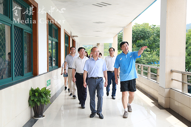 我校体育部、宣传部、保卫处、后勤服务中心等相关部门负责人陪同考察。