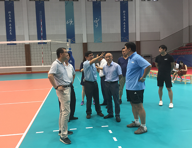 吴永良一行实地考察了全国学生运动会女子排球大学组的比赛场馆、功能用房,以及校园氛围的营造情况。