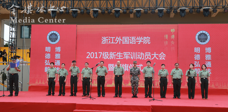动员大会结束后,赵伐代表学校向军训团长授旗,军训团长向各连长授旗,各连长向各排长授旗。