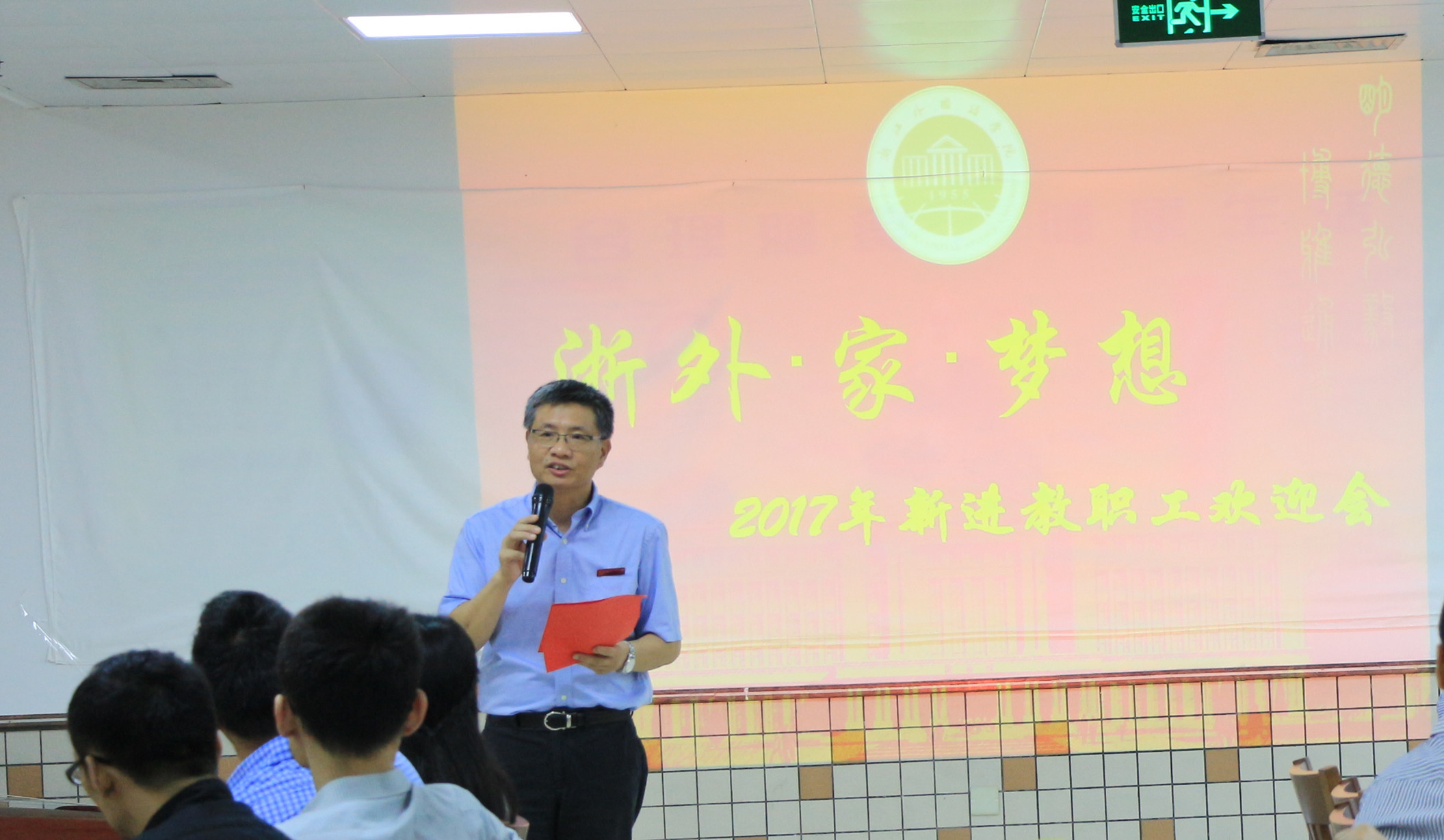 宣勇代表学校对2017年新进教职工的加入表示热烈欢迎。他讲到,教育是爱的事业,希望新教师要对事业有情怀、对学生有爱心、对学术有热情;要能坚守教师本色,有理想信念、有道德情操、有扎实学识、有仁爱之心,努力做好学生的引路人。希望行政教辅人员敬业爱岗、尽职尽责,乐学善思、追求进步,乐于干事业、甘于做贡献。宣勇表示,学校将密切关心大家的工作、生活、学习和个人发展,为大家多办实事、多办好事,努力营造关心教职工、支持教职工干事创业的良好氛围。