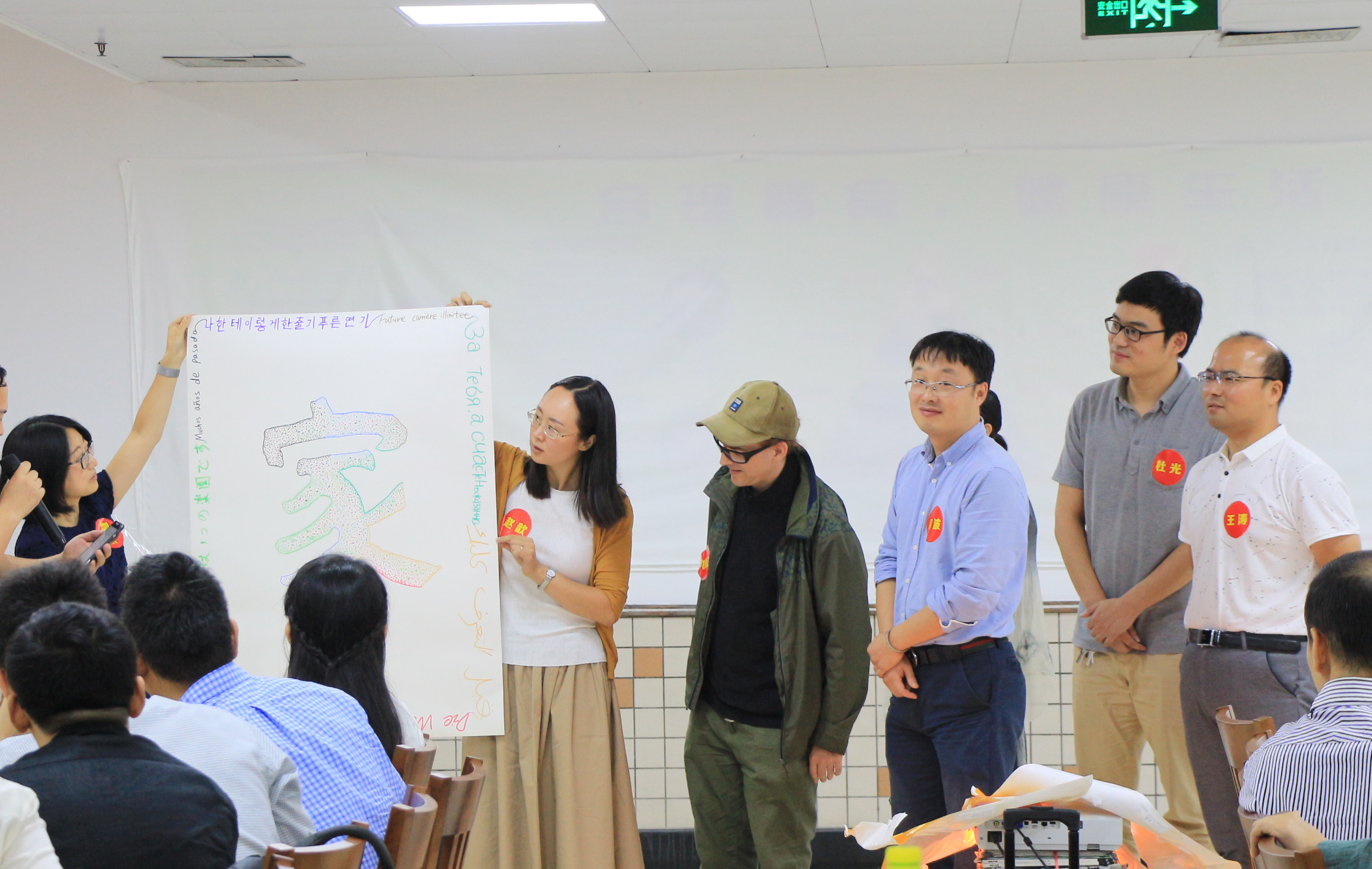 欢迎会上,各位新进老师分组用画笔将对集团的印象,对未来在集团生活的展望,以画作形式表达了出来。2017年引进的合唱指挥教授周娟娟老师携“The New”学生合唱团演绎了《集团校歌》;新进2008年奥运会太极拳全能冠军崔文娟老师携古筝教师孔俏俏表演了节目《和》。