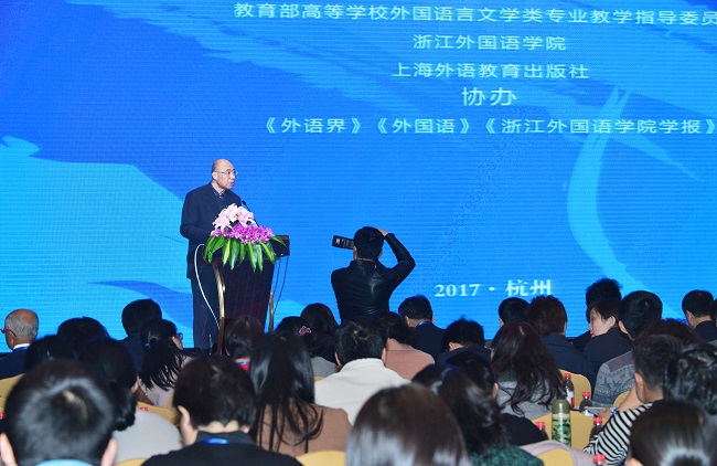 3月17日,由我校和教育部高等学校外国语言文学类专业教学指导委员会(以下简称外指委)、上海外语教育出版社联合举办的第十一届全国英语专业院长/系主任高级论坛在杭州隆重举行。本届论坛的主议题是“《国标》指引下的英语专业课程建设和质量提升”,来自全国各地的700多位外国语学院院长、专业负责人齐聚G20之后的钱塘江畔,共同探讨英语专业教学改革的核心问题与发展方向。校长洪岗出席论坛。校党委副书记赵伐主持论坛开幕式。