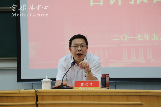5月25日,学校召开合格评估自评报告宣讲会。副校长曹仁清主持会议。校党政领导班子成员出席会议。