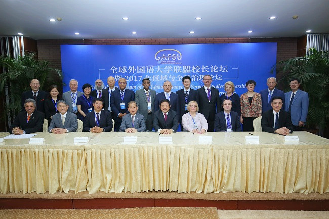 5月19日,全球外国语大学联盟校长论坛暨2017年区域与全球治理论坛在北京举行。会上成立由北京外国语大学倡议发起的全球外国语大学联盟。校长洪岗参加论坛和联盟成立仪式。