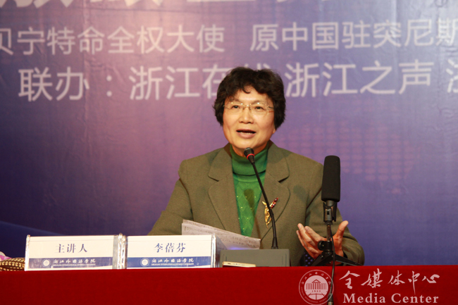 日前,原驻贝宁特命全权大使、原驻突尼斯特命全权大使李蓓芬作客浙江人文大讲堂集团分讲堂第十三讲,以“心怀祖国,放眼世界——走进外交官的生活”为主题作专场报告。校党委副书记赵伐主持报告会。