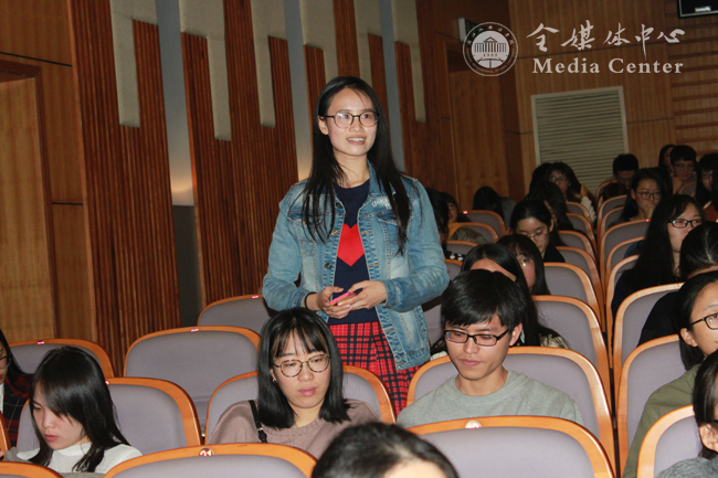 讲座的互动环节中,针对现场同学们的提问,李蓓芬围绕复合型人才培养、国际新闻传播、中国人的国际形象及美国大选等问题,做了生动形象的解答。
