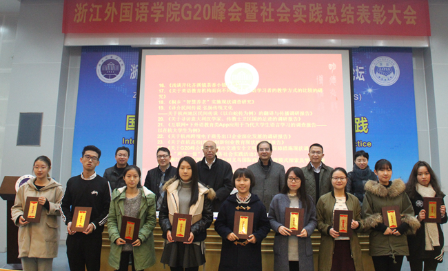 在G20峰会志愿者表彰环节,校团委负责人介绍了我校师生G20峰会志愿服务情况。现场颁发了我校荣获市委市政府颁发的“先进集体”、中国青年志愿者协会颁发的“先进集体”、浙江省志愿者协会颁发的G20杭州峰会志愿服务工作“突出贡献奖”等三个集体荣誉奖项。陈超等7名师生荣获省委省政府颁发的“先进个人”荣誉称号;陈澄等9名教师获中国青年志愿者协会颁发的“先进工作者”荣誉称号;朱海滨等29名同学获中国青年志愿者协会颁发的“杰出志愿者”荣誉称号;唐敏等465名师生获中国青年志愿者协会颁发的“优秀志愿者”荣誉称号;丁彩瑶等4名师生荣获浙江省志愿者协会颁发的“先进工作者”荣誉称号;杨楚乔等29名同学获浙江省志愿者协会颁发的“优秀志愿者”荣誉称号。“先进个人”代表赵惠老师与“优秀志愿者”代表沈才翘同学进行了经验分享。