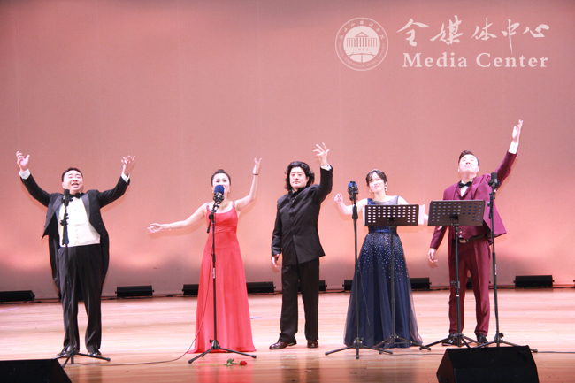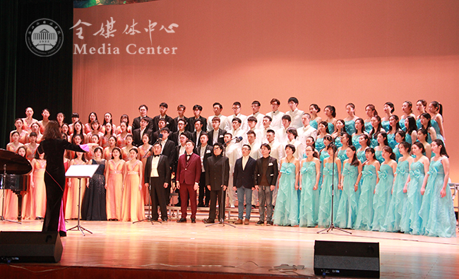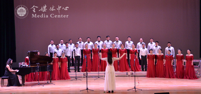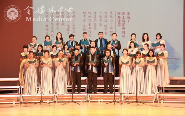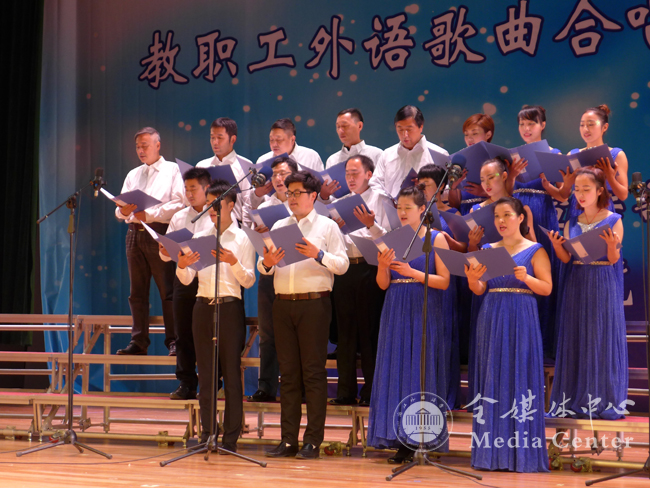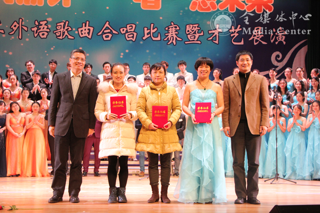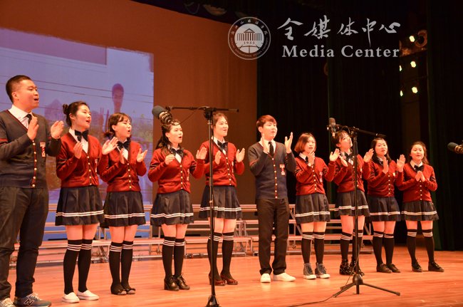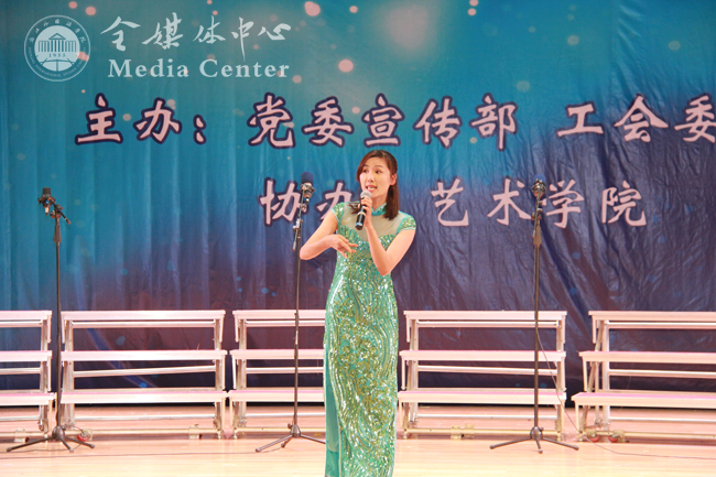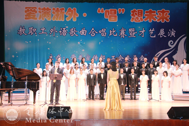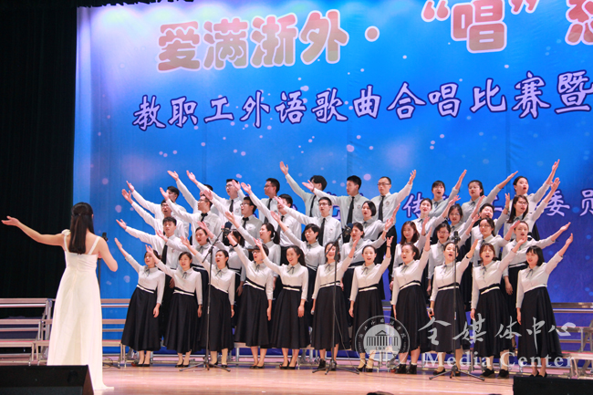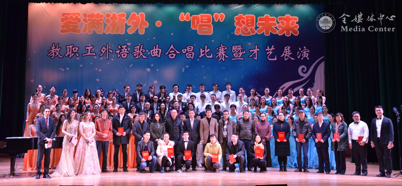 12月29日下午,爱满集团•“唱”想未来教职工外语歌曲合唱比赛暨才艺展演在追梦堂举行。校党委书记宣勇、校长洪岗等校领导出席并观看了全校教职工代表的精彩表演。本次活动由党委宣传部、工会主办,艺术学院协办。艺术学院的音乐专业教师们担任了本次展演的评委。与往年不同,今年,来自美国和埃及的外教也加入了主持阵营,中英双语主持,更加彰显了我校国际化办学特色。