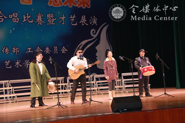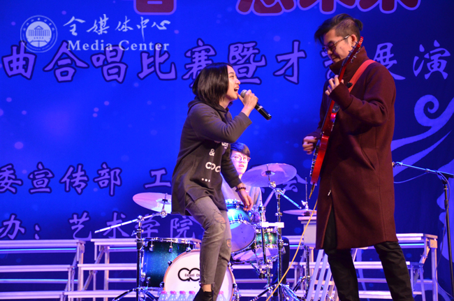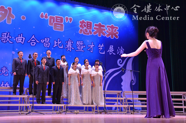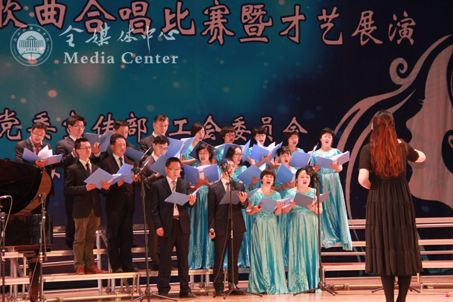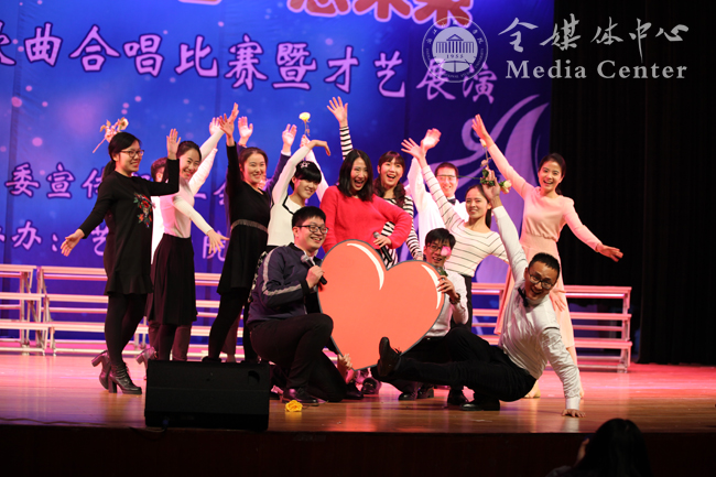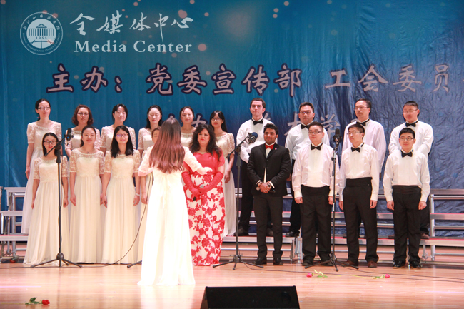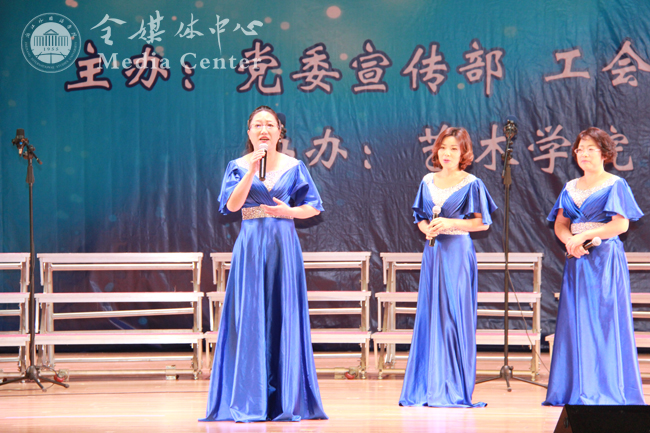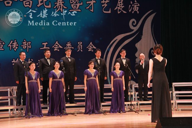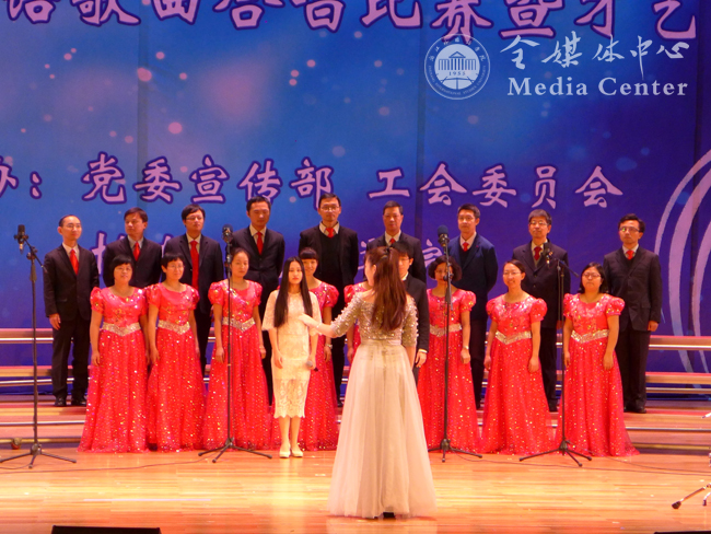 最后,合唱比赛环节,西语学院代表队获得金奖,机关和英文学院代表队获得银奖,师干训、科技学院和中文学院代表队获得铜奖;才艺展演环节,体育部获得金奖,机关和英文学院代表队获得银奖,师干训、中文学院和东语学院代表队获得铜奖。艺术学院获得特别奖。 在展演过程中,记者采访了参加表演的老师们。西语学院的老师表示,他们有一个温暖的“西语大家庭”微信群,群里记录了老师们每次排练时的视频,见证了老师们彼此间的鼓励和帮助。站在舞台上,向全校的教职工们展现西语学院的自信和对学校对学生的爱,他们内心满是自豪与骄傲,当听到学生们的欢呼声时心里更是充满了激动。英文学院的老师告诉记者,平时上班,做研究,大家都十分忙碌,但是仍然很乐意参加这样的活动,一方面可以丰富自己的生活,另一方面也可以向学生展示他们不一样的一面,拉近师生之间的距离,增进同事之间的感情。“排练十分辛苦,老师们结束上午的课程后,挤出中午的时间进行排练,下午紧接着又投入到授课中去,领导们和学生们对此都很支持,这让我们感到一种充实的满足感。”接受采访的中文学院老师说道。 来观看才艺展演的学生们看到自己的老师在舞台上完美的表演,激动地说,“原来,老师们不仅学识渊博,教学经验丰富,而且还这么的多才多艺啊!都是我们男神女神啊!”学校拥有那么多年轻有为、才华横溢又充满活力的教师,师生关系如同朋友,亲密自然,这让同学们对学校的爱又多了几分。