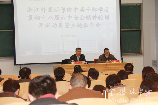 1月6日上午,我校中层干部学习贯彻党的十八届六中全会精神集中轮训班在望院C116会议室开班学习,校党委书记宣勇出席开班式并作报告。校党委副书记骆伯巍主持会议。党委委员、组织部部长张环宙,全校中层干部、二级基层党组织主要负责人和党支部书记参加了会议。