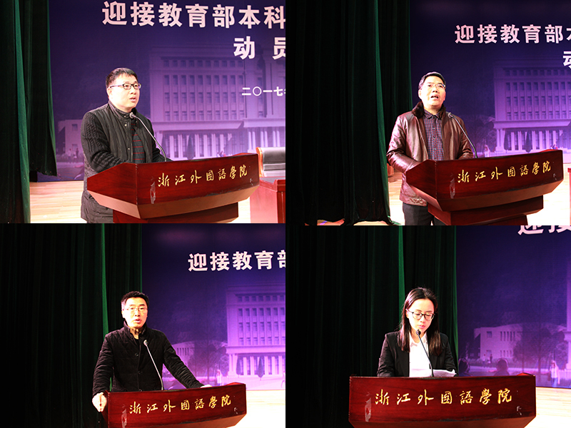 会上,部门、学院代表及师生代表从各自角度出发,作了饱含激情的表态发言,表明了为顺利通过合格评估而尽心尽责的决心。