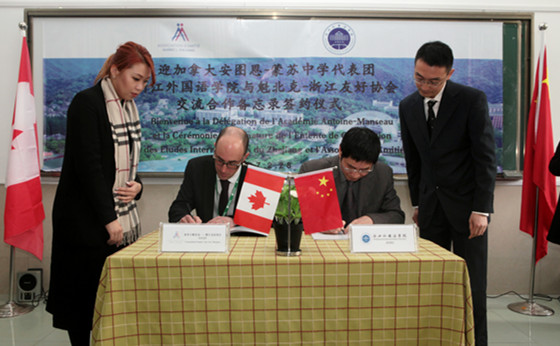 洪岗对魁北克-浙江友好协会和安图恩•蒙苏中学积极搭建平台,促进两地教育交流表示赞赏。他说,文化交流是一种国际趋势,需要主动作为。借用加拿大知名作家马尔科姆•格拉德威尔有关小举动引发大变革的观点,洪岗表示集团愿与魁北克-浙江友好协会、安图恩•蒙苏中学积极沟通,加强合作,推动浙江与魁北克的教育交流。