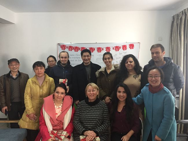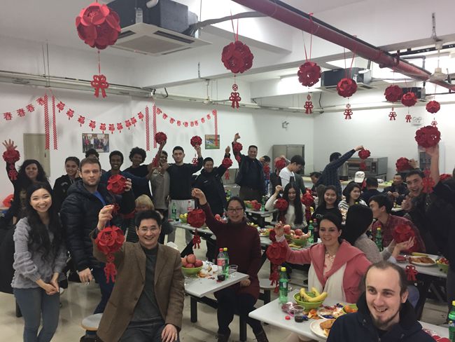 农历腊月二十九,小和山校区喜气洋洋,校长洪岗与留校的中外师生员工50余人齐聚学校餐厅,吃团圆饭,共迎新年。
