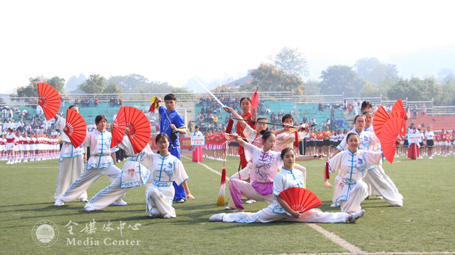 开幕式上,10个二级学院的近1000名学生参加了太极拳和健美团体比赛。校武术队带来的传统舞狮表演、健美操队带来的活力啦啦操表演、街舞社带来的热辣街舞表演等精彩节目展示了我校富有特色的体育文化。