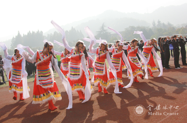 中文学院代表队表演古典舞蹈“宫商角徵羽”